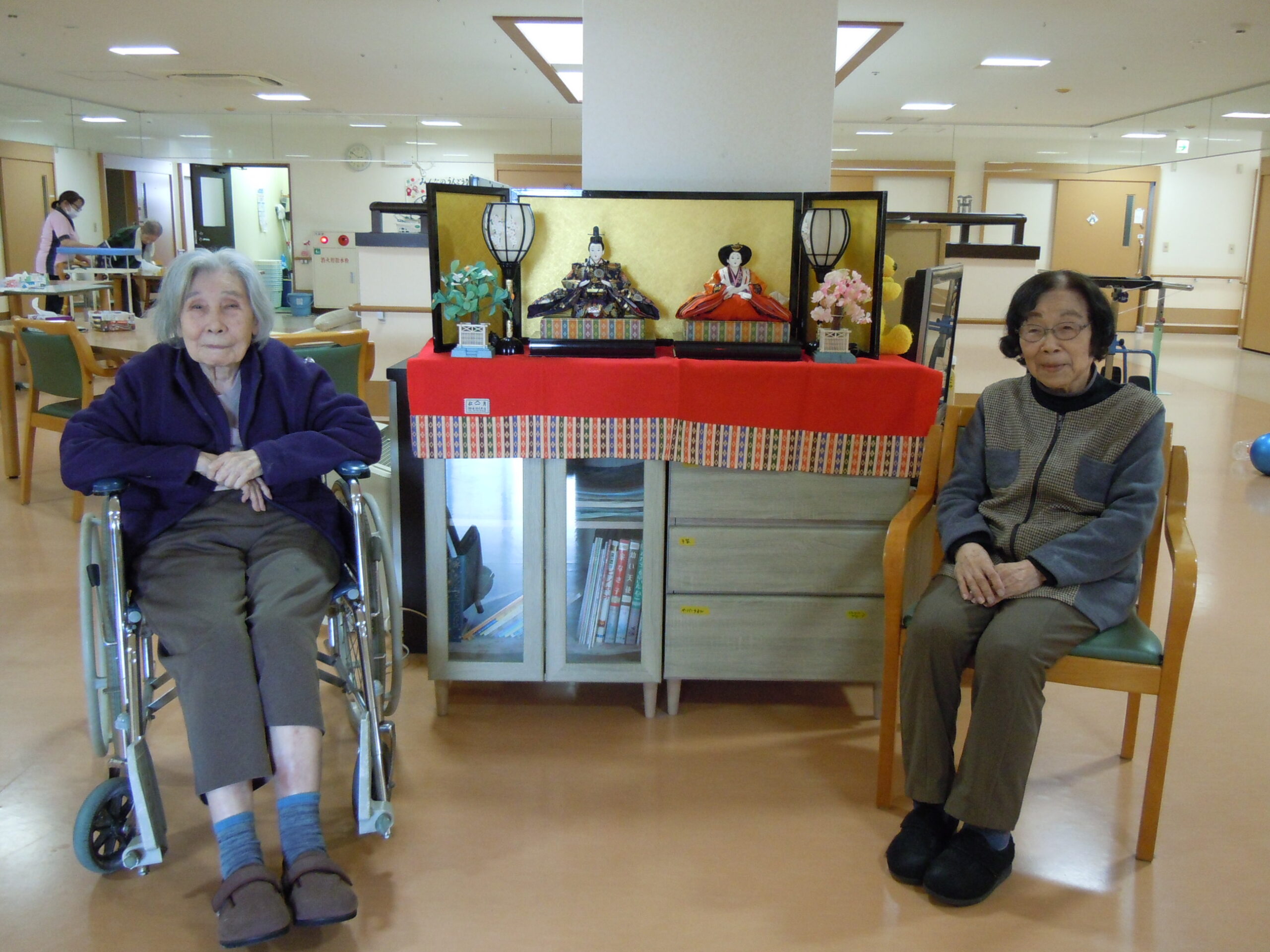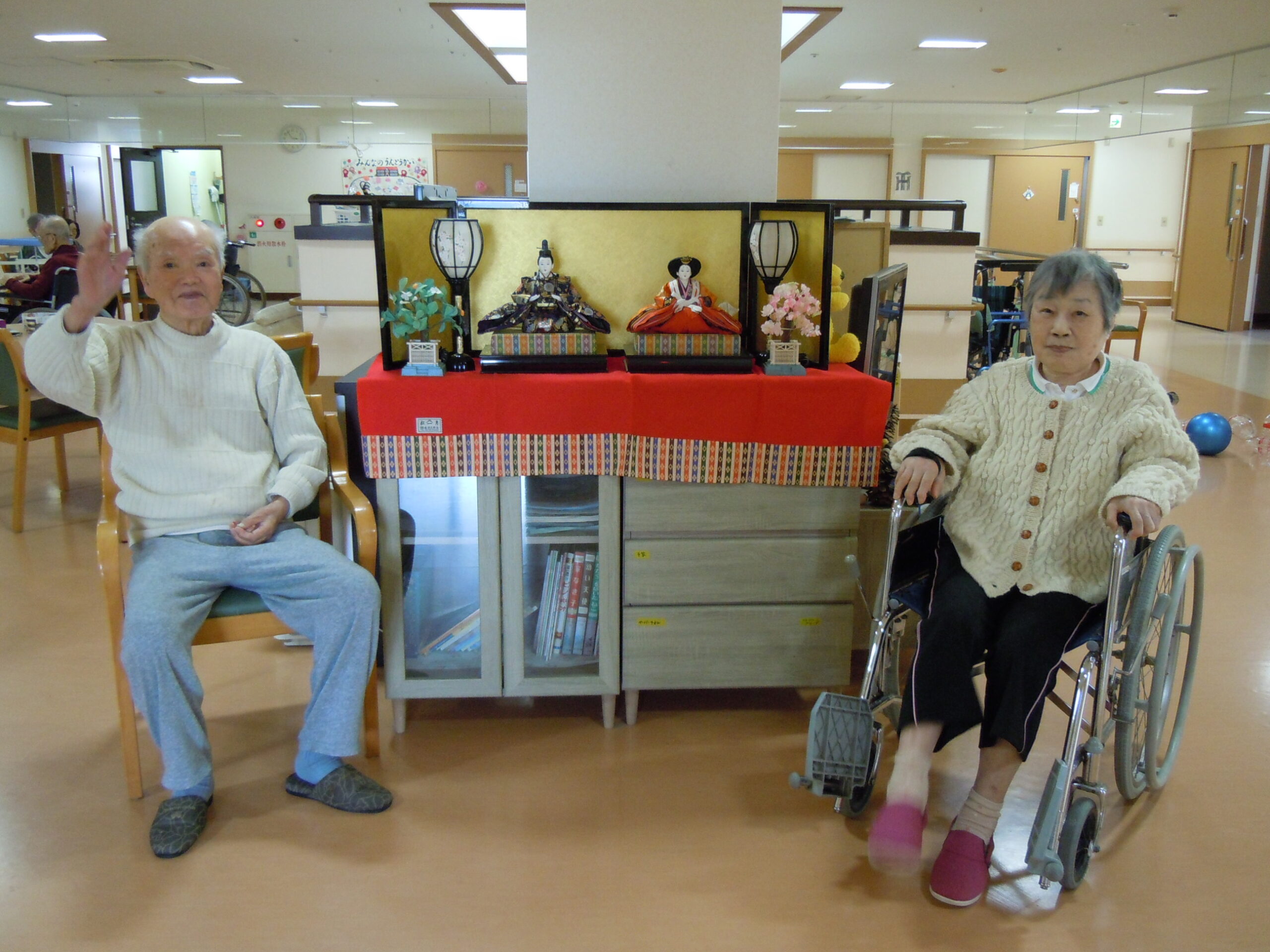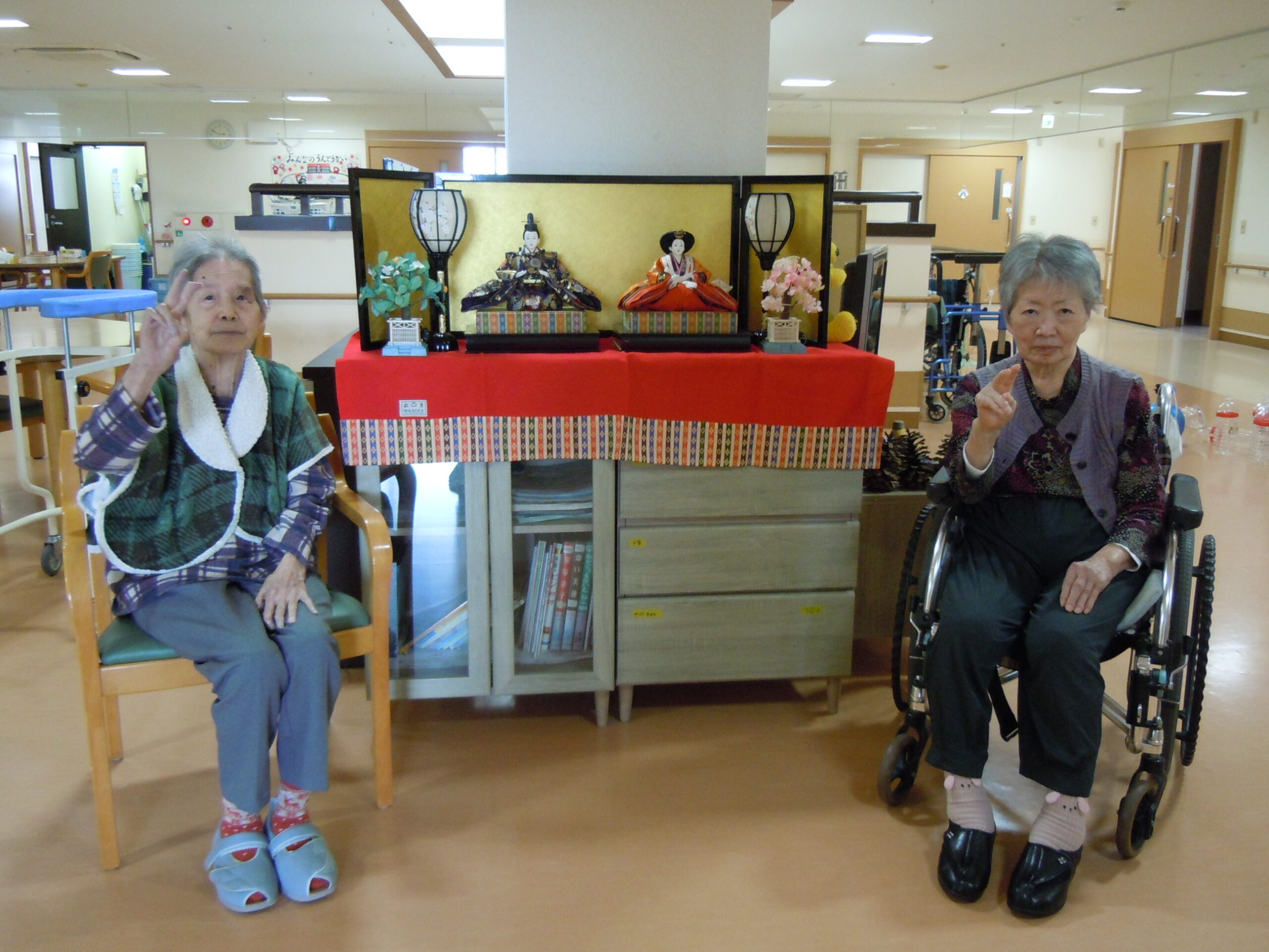 2026年3月4日 アルバム ひな祭り 3月3日は雛祭り。 女の子の健やかな成長と幸せを願う日本の伝統行事で「桃の節句」とも呼ばれます。 各フロアにお雛様を飾ると、皆さま昔を懐かしむように見ておられました。 春が近づいてくるようで、気持ちもほんのり温かくなる感じがしますね。
