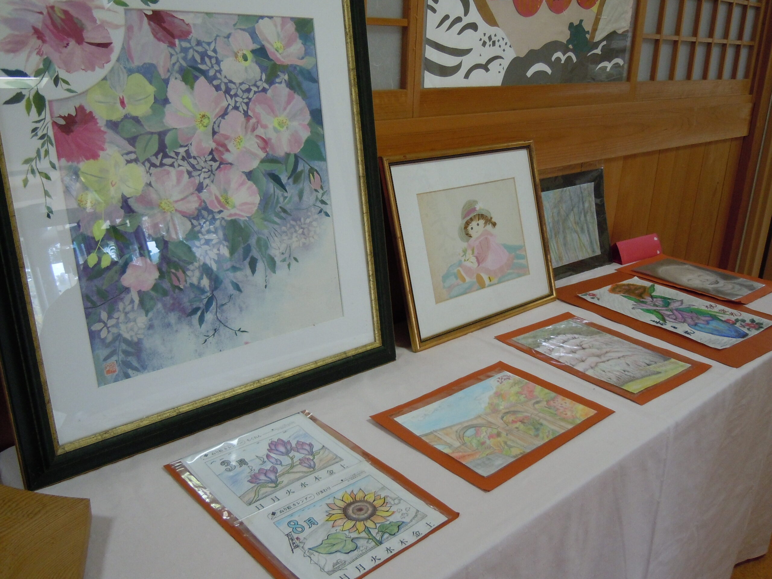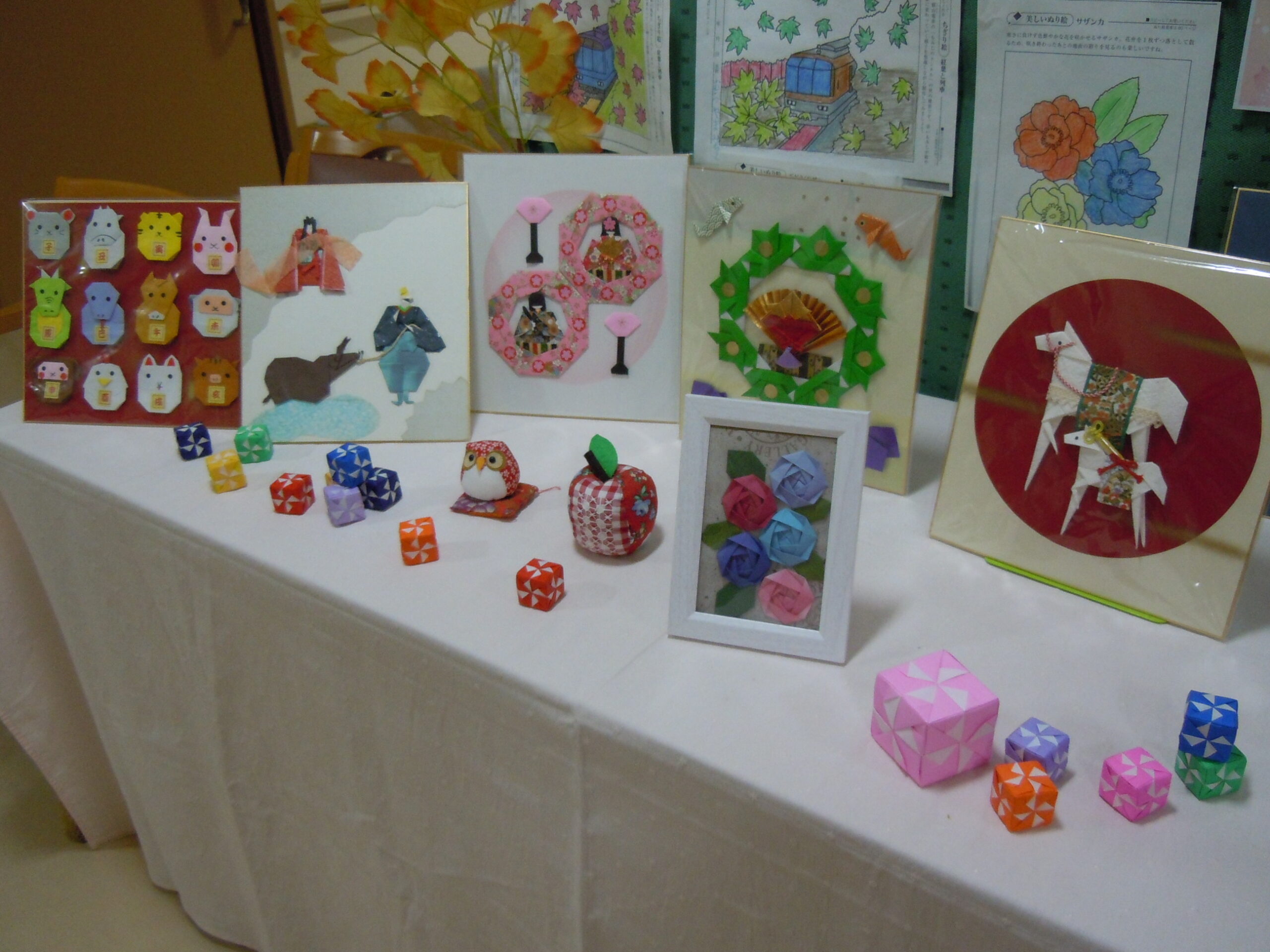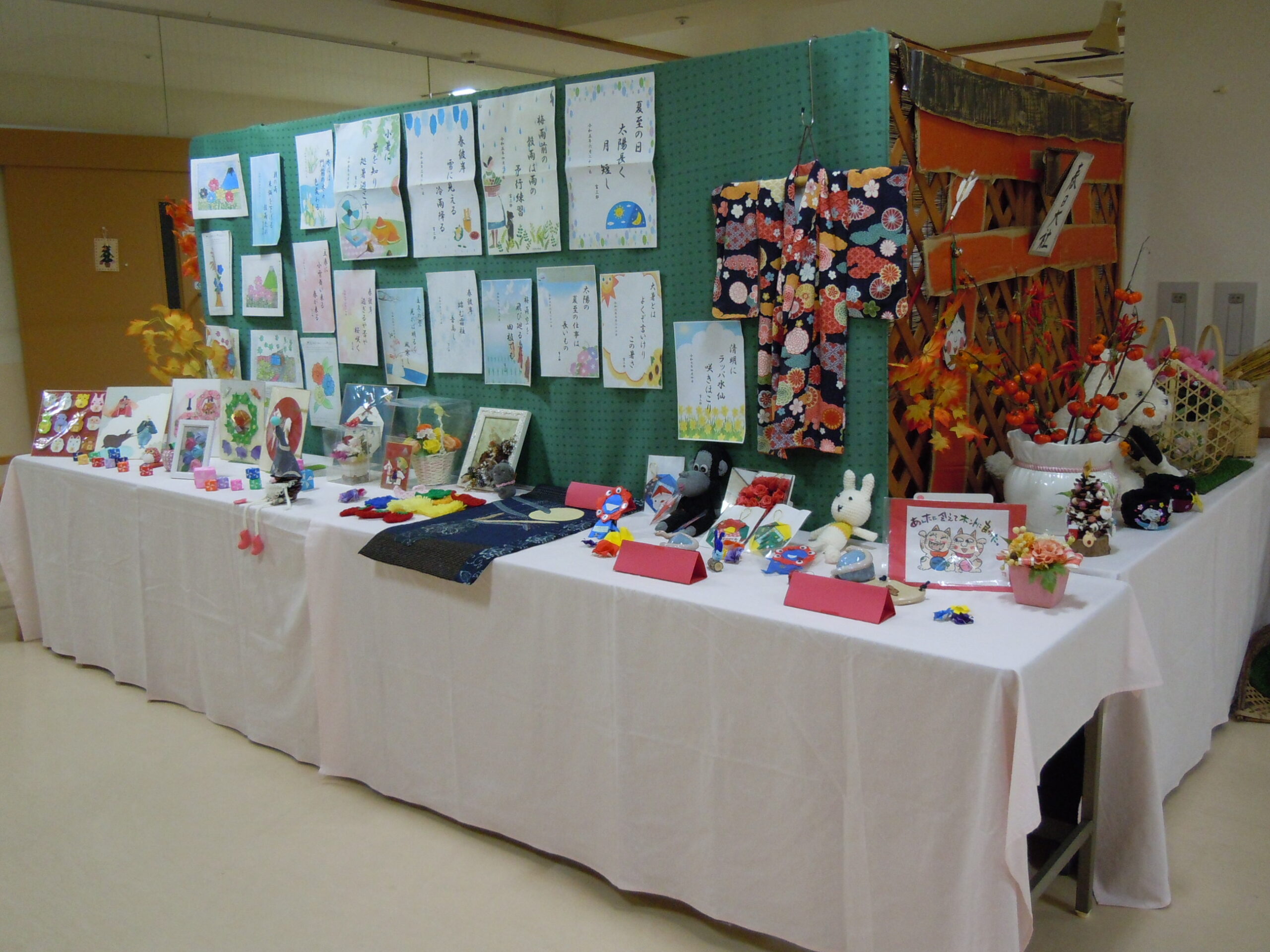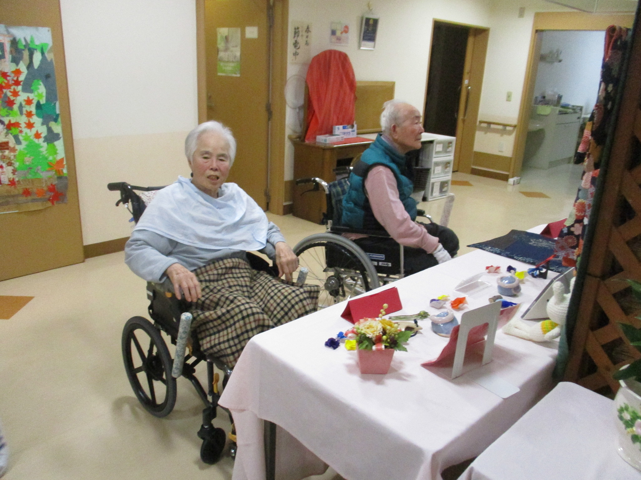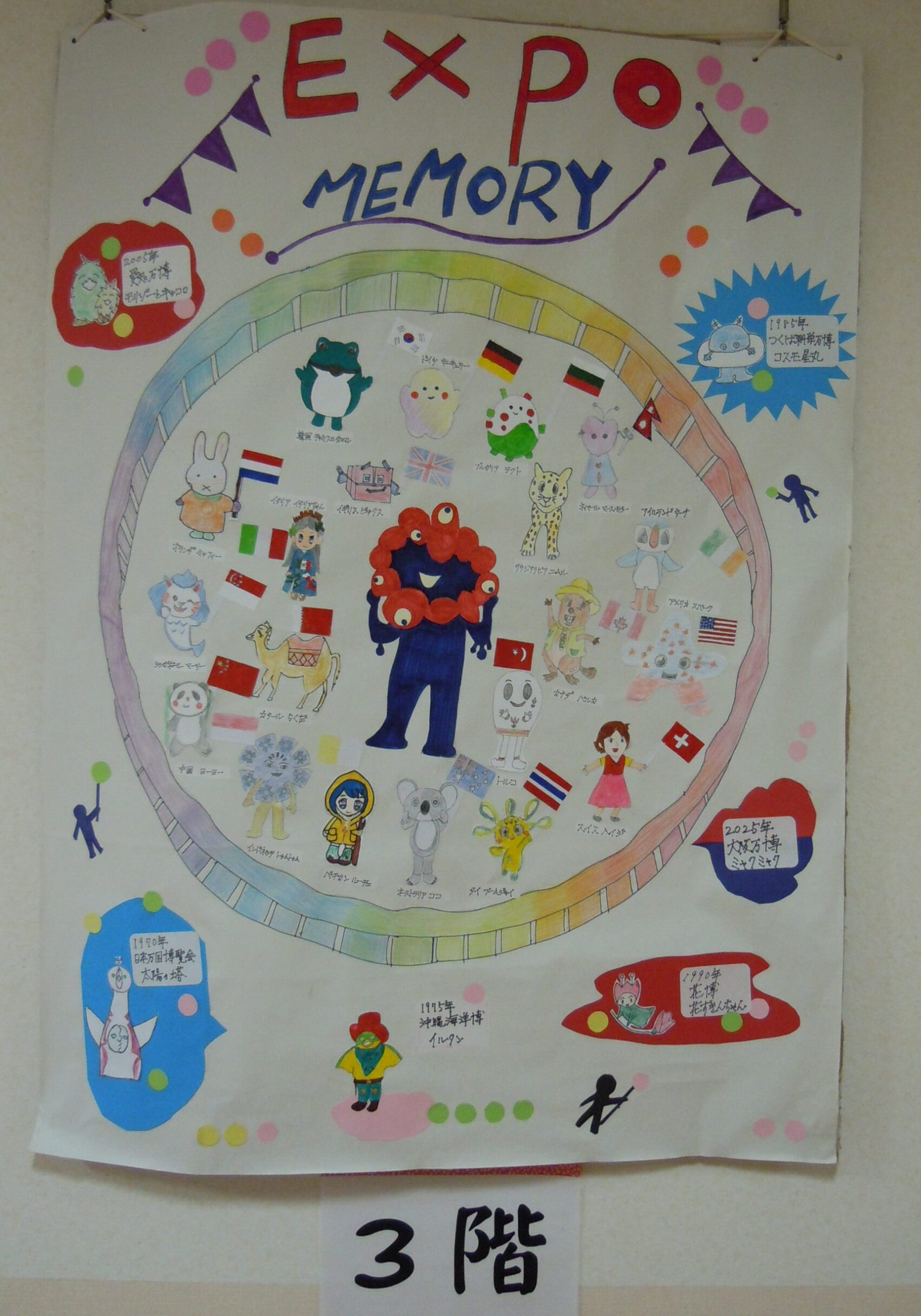 2025年11月30日 アルバム 文化発表会 11月は文化発表会を開催しました。 折り紙や塗り絵・俳句・手芸・絵画・陶芸など、入居者様の色々な作品を展示し皆さまに観てもらいました。「上手だね」「器用に作るね」と熱心に鑑賞されていました。 また、各階ごとに「万博の思い出」をテーマに製作。1970年の大阪万博の思い出や、太陽の塔の絵を描いてもらいました。もちろん今年開催の関西万博マスコットのミャクミャクも!