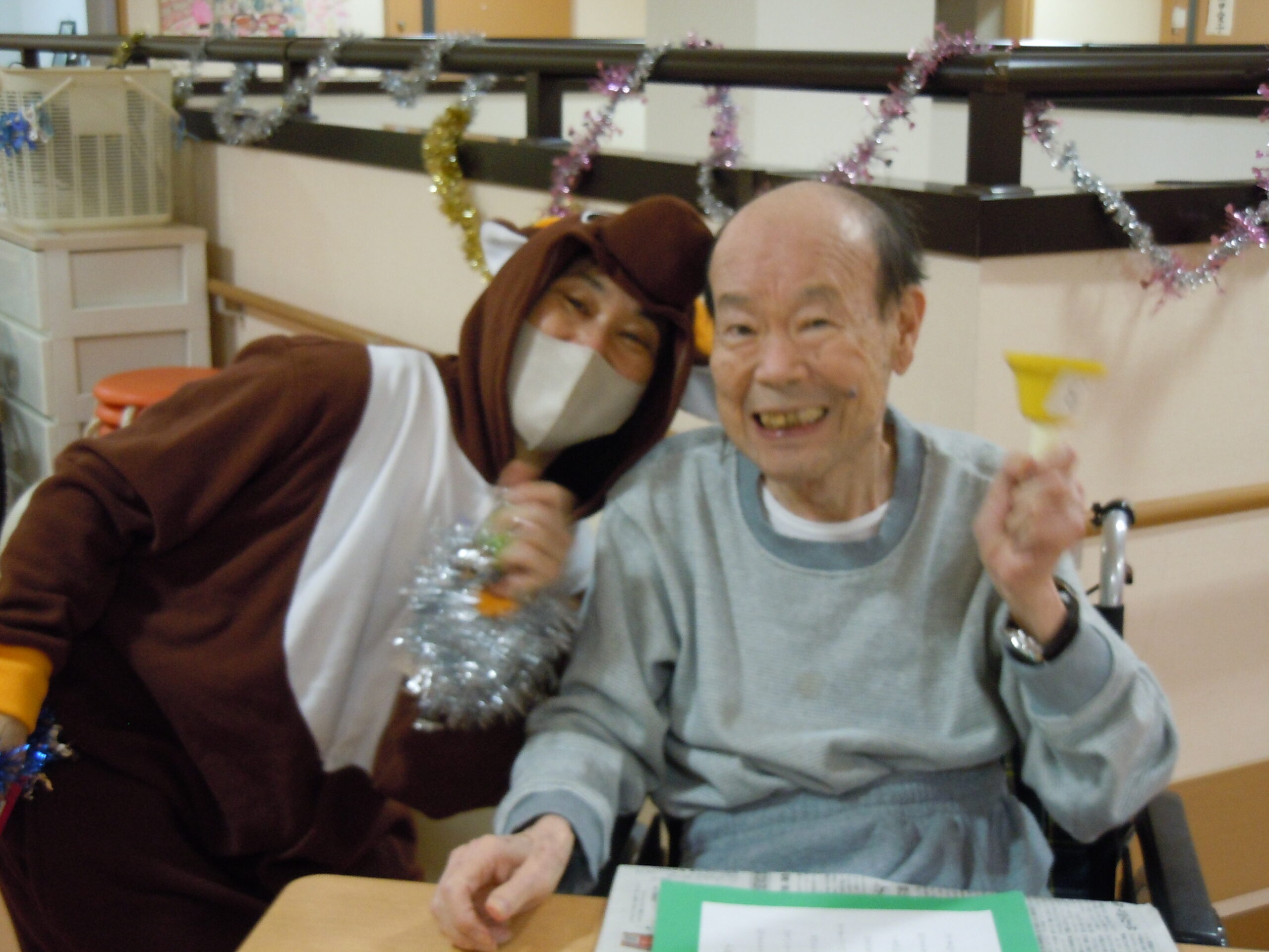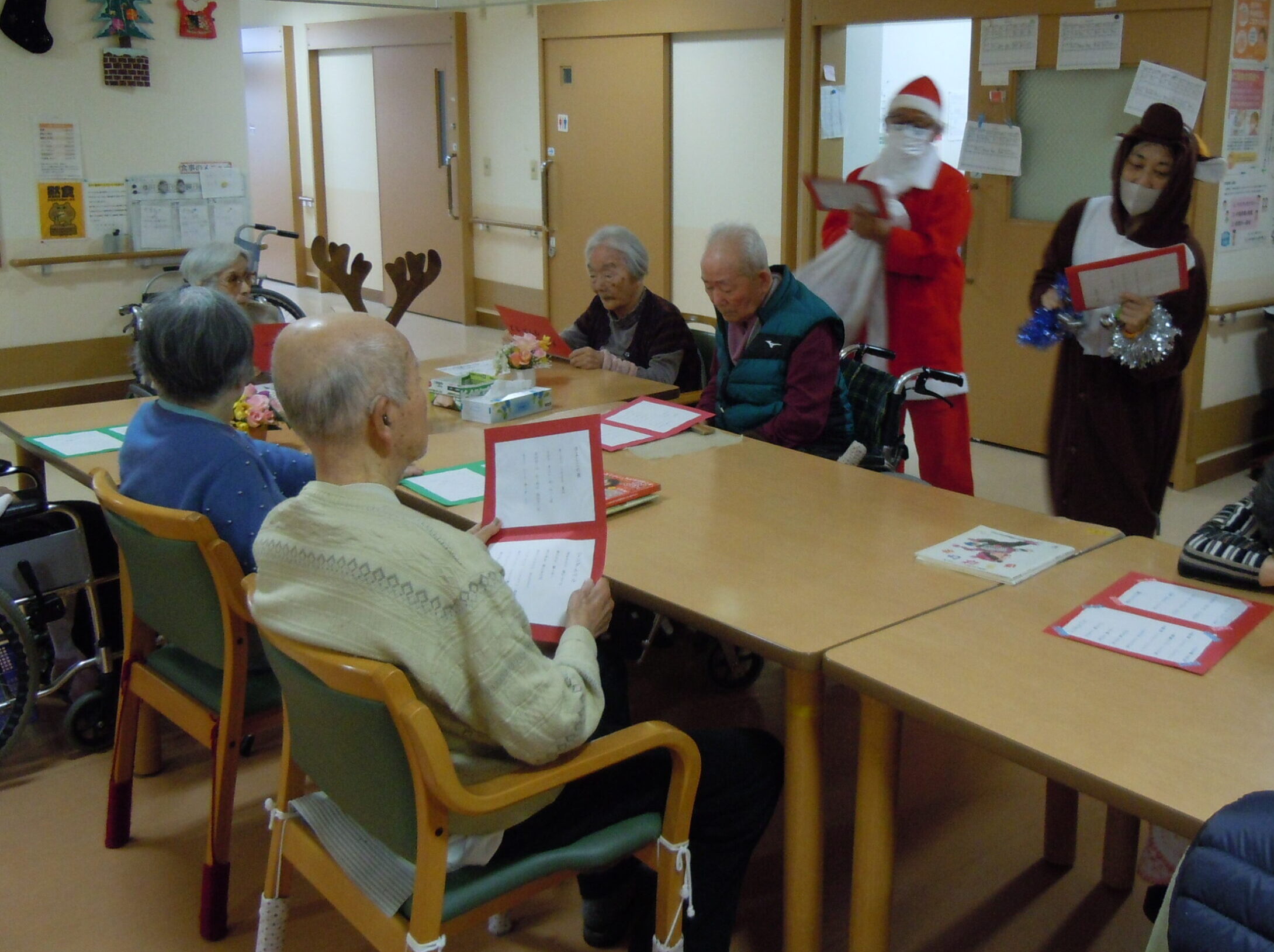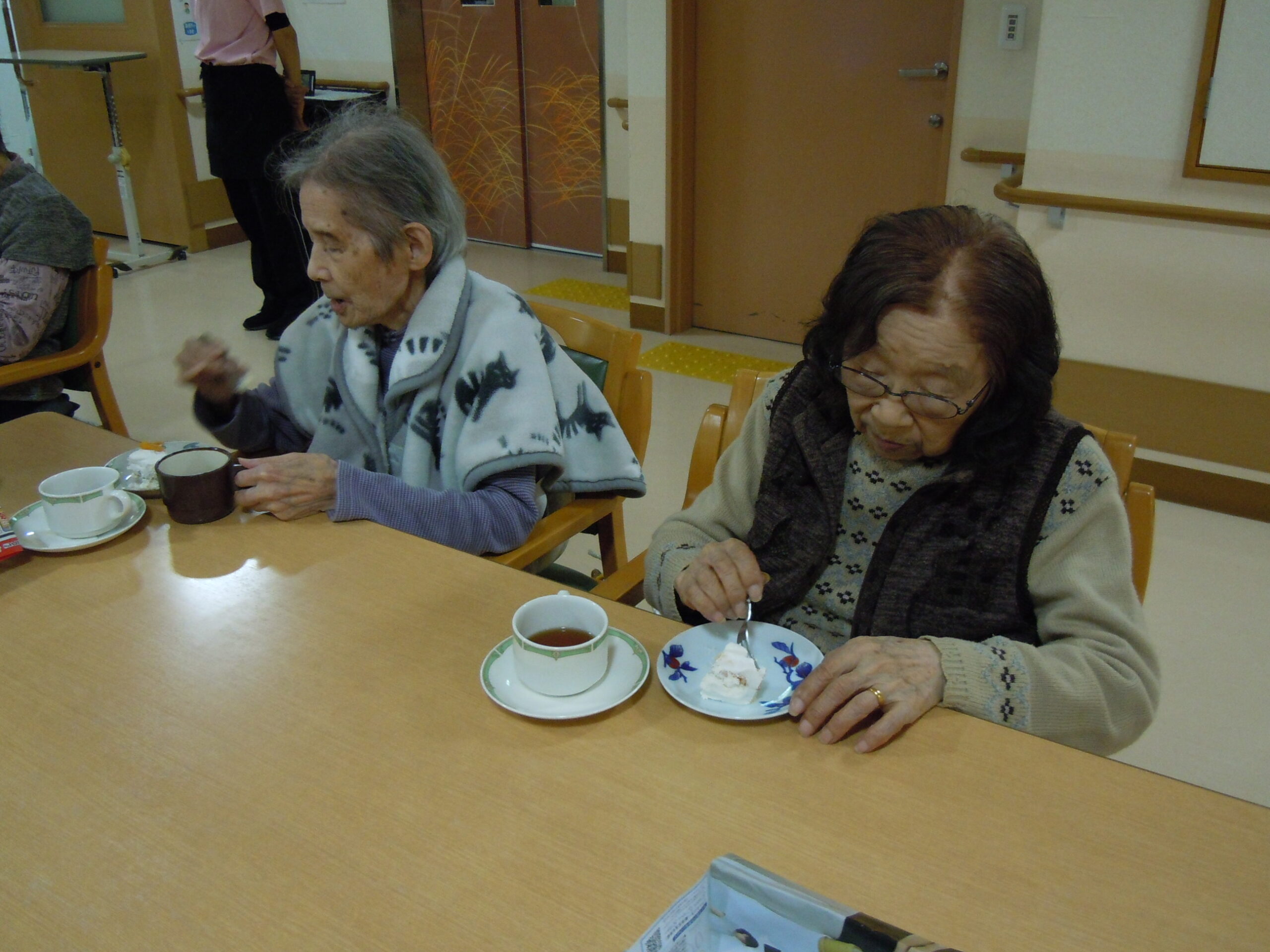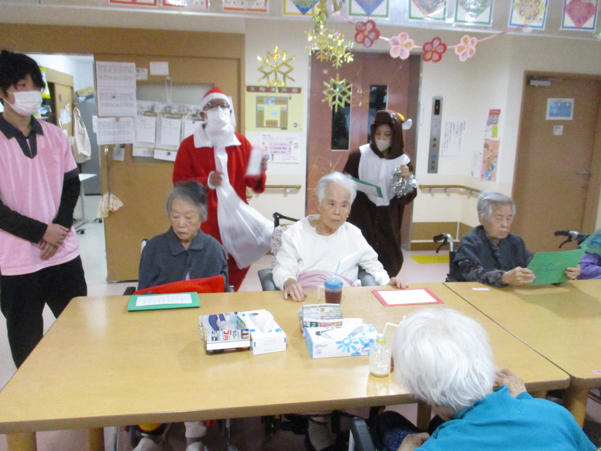 2025年12月25日 アルバム クリスマス会 今日はクリスマス🎄 各フロアでクリスマス会が開かれ、サンタ🎅とトナカイ🦌がやってきました。 「赤鼻のトナカイ」「ジングルベル」「きよしこの夜」をみんなで歌いました。 美味しいケーキと紅茶もよばれて楽しい時間を過ごせました。